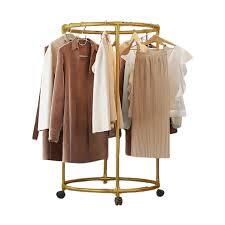 Suport Rotund pentru Haine din Otel Inoxidabil, 130 cm, cu Roti Pivotante, Capacitate 40 kg, Auriu